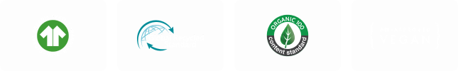 Die meisten unserer Produkte bestehen aus Bio-Baumwolle. Diese Bio-Baumwolle ist 100% GOTS-zertifiziert. Der Polyester-Anteil in unseren Textilien stammt aus recyceltem Material.